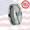 Another in our line of carbon fiber rings. The ATHENS titanium ring is complete with woven black carbon fiber inlay. These unique, lightweight materials perfectly complement one another to create a high-tech wedding band or men’s fashion ring. Available in 8mm width.
