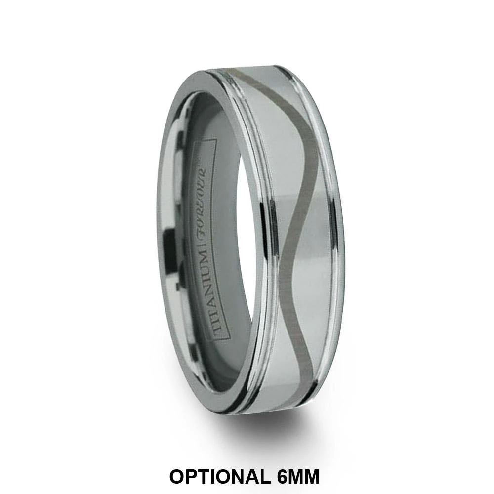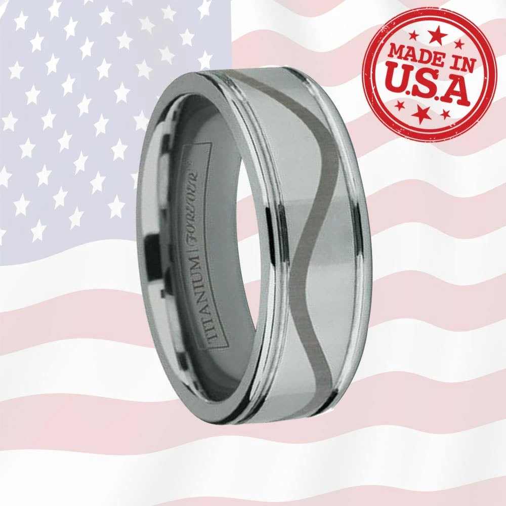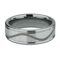 Let the waves of joy rush over you when you open your ring box to find this stunning titanium band. High polished groove titanium is the perfect canvas for our oceanic-inspired laser design. Choose your preferred width of 6mm or 8mm or it a set with both.