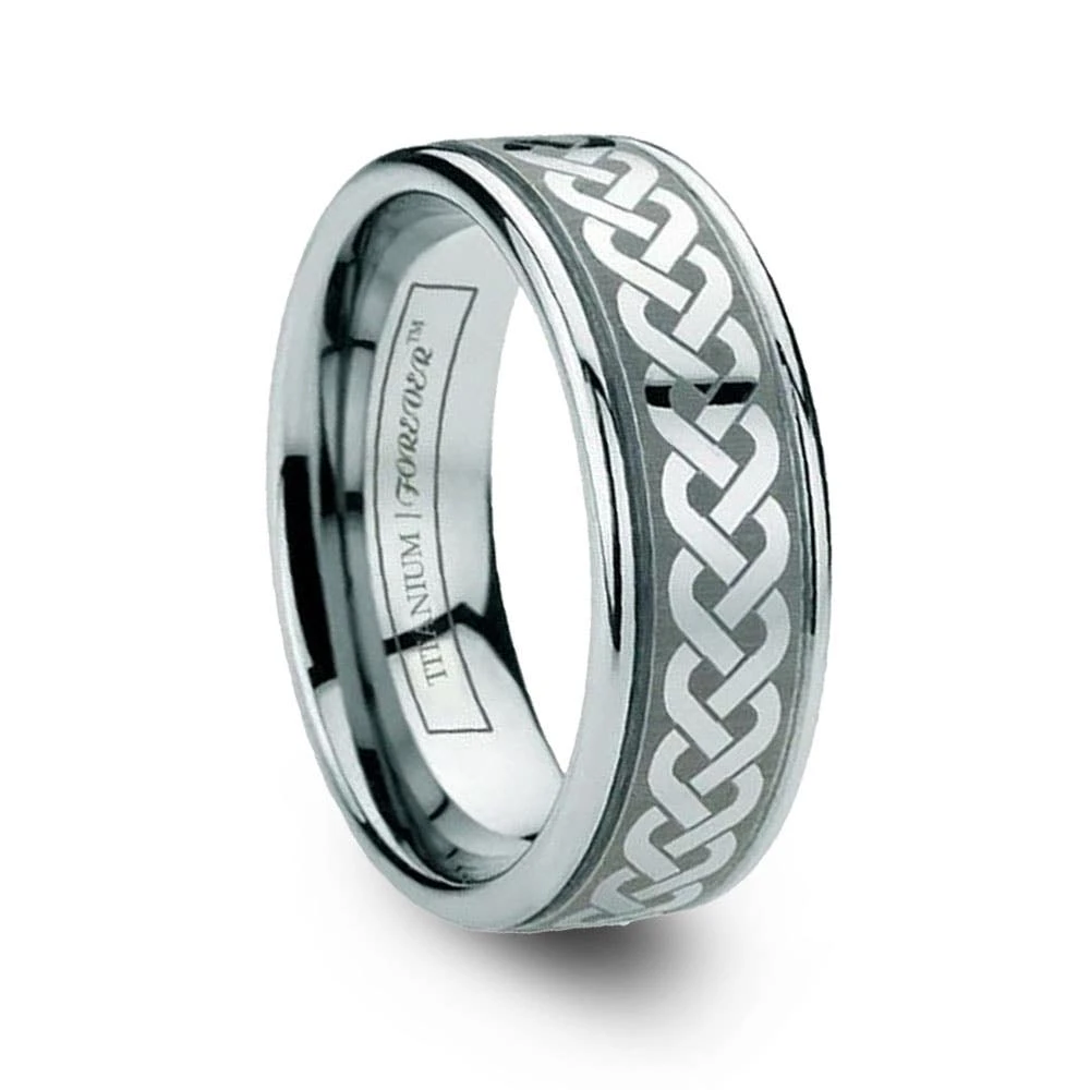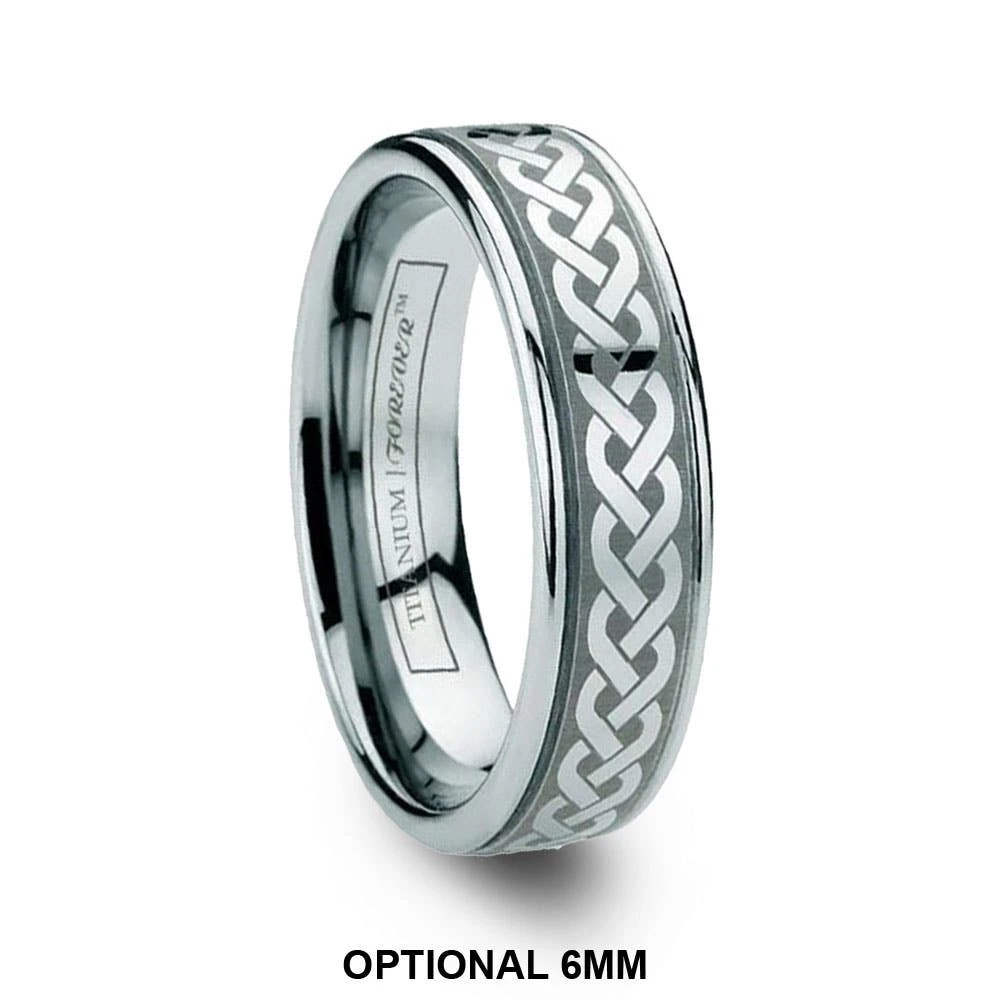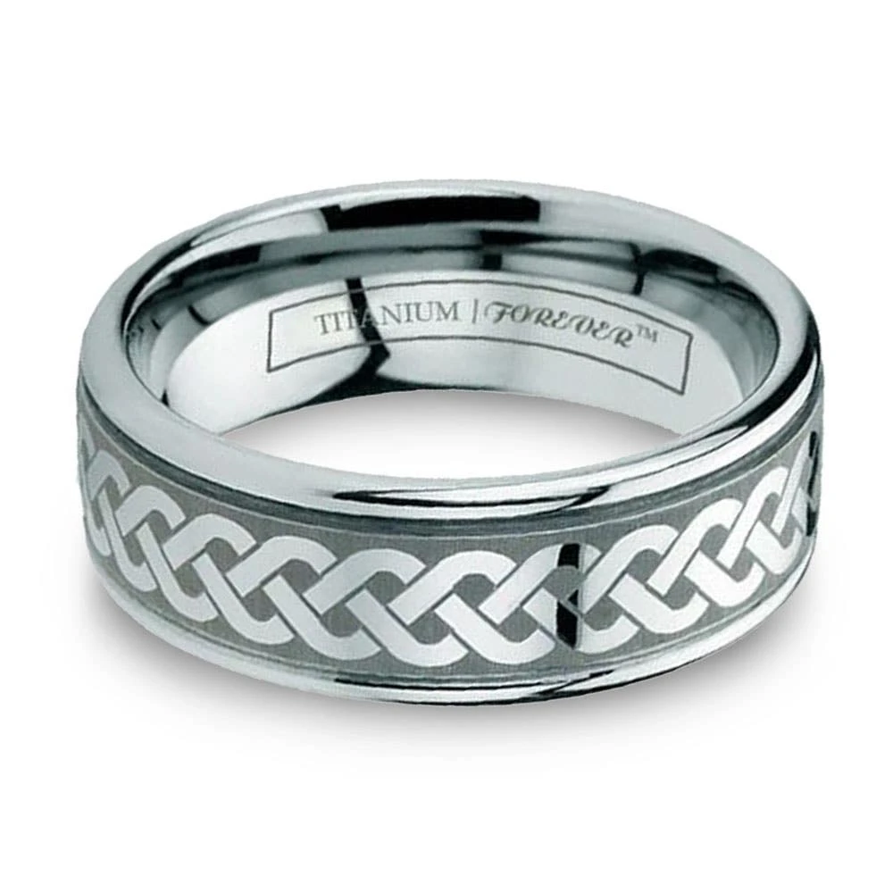 With their short and humorous rhymes, limericks stick with you from when your younger all the way into old age. The LIMERICK Celtic etched titanium band is the same way. Made from durable and strong titanium of the highest quality, the LIMERICK also features a braided Celtic design laser engraved onto its exterior. Available in widths of 6mm or 8mm, this band makes for perfect his and hers sets.