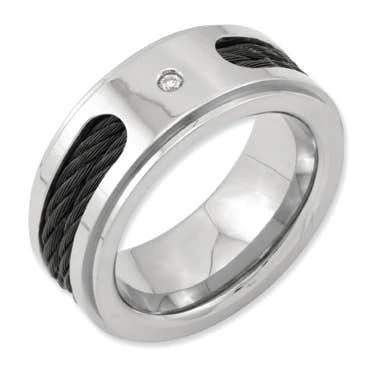 Diamond rings aren’t for all men, unless they have the style of the MONTREAL. Black cable design comes to a focal point at a .05 ct diamond. All done using a high polished, raised top 10mm titnanium band, this ring’s masculine appeal can be seen from anywhere in the room.