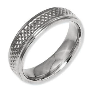 Woven patterns have long been a sign of marriage and love throughout the ages. The MOSCOW titanium wedding ring features grooved edges flanking an intricately woven center pattern. Much like the weaving of your lives together, this wedding band will remain a symbol of your infinite love for one another.