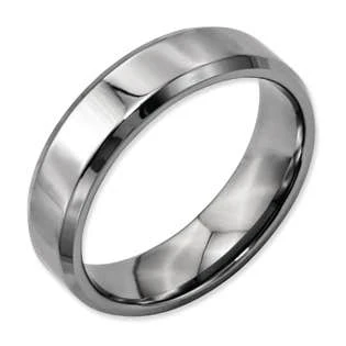 A full polished version of the PLYMOUTH, the TUSCON wedding ring shines with a lustrous appeal. Beveled at either edge, this titanium wedding ring for men and women is comfortable and lightweight. Don’t forget to add your own personal inscription to the interior of the ring to further commemorate your special day.